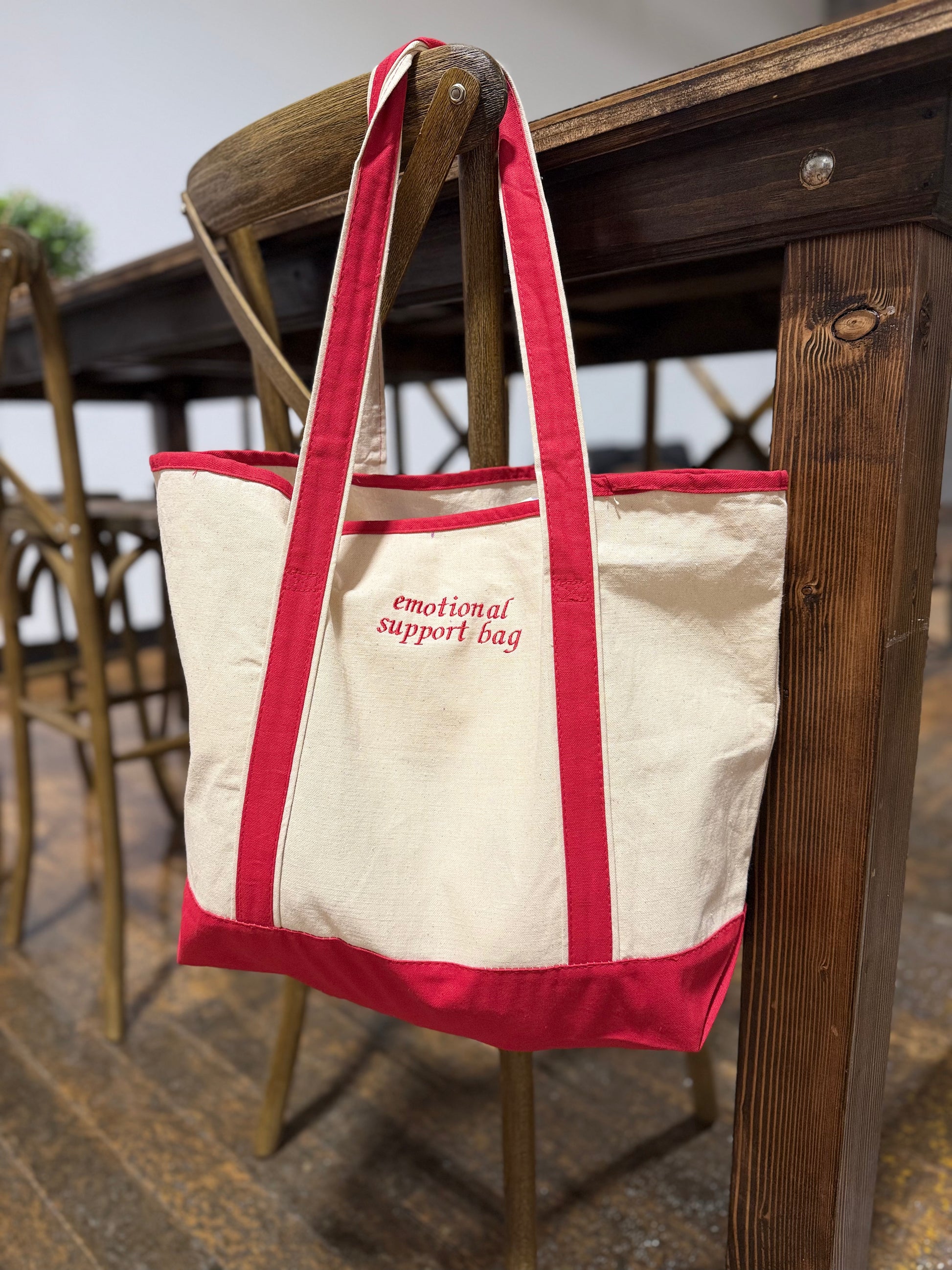 Need a little emotional backup? This embroidered Emotional Support Bag is here to carry your snacks, your errands, and your emotional baggage—literally.